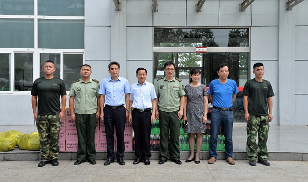 為進(jìn)一步增進(jìn)軍民關(guān)系,在“八一”建軍91周年之際,8月1日上午,鹽房定遠(yuǎn)項(xiàng)目徽鹽安徽飯店領(lǐng)導(dǎo)班子一行來到定遠(yuǎn)縣消防大隊(duì)走訪慰問官兵,在為他們送上西瓜、飲料、礦泉水等慰問品的同時(shí),也轉(zhuǎn)達(dá)了中共徽鹽地產(chǎn)定遠(yuǎn)項(xiàng)目黨支部對他們節(jié)日的問候與祝福。