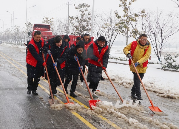 近日,受強冷空氣影響,霍邱縣迎來了連續(xù)雨雪天氣,縣城道路出現積雪、結冰現象,給人民群眾出行帶來了安全隱患。2月4日,霍邱項目黨支部積極響應屬地新店鎮(zhèn)黨委號召,組織黨員志愿者開展了“掃雪除冰暖人心 白雪更映志愿紅”黨員志愿服務活動,采取以機械作業(yè)為主,人工清雪為輔的方式,開展掃雪除冰、疏通道路等工作,全力保障人民群眾安全出行,以實際行動彰顯國企擔當。